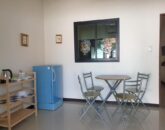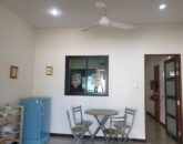 Air conditioners in living room and bedroom, Kitchen area with electric stove, Parking area, Small space around the house.