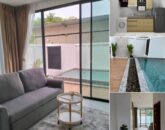 With furniture and 3 air conditioners, kitchen and refrigerator.