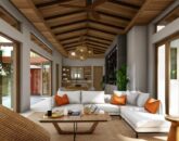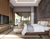 There is a spacious living room overlooking the pool and garden, a dining area, an open-plan kitchen, and an outdoor lounge zone. The villa has a laundry/ storage room. All bedrooms have spacious walk-in closets and private bathrooms.