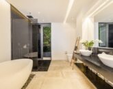 With 272 square meters of interior and exterior living space, the apartment is designed for seamless indoor-outdoor living. A west-facing terrace stretches the full width of the property and features a stunning 11.5-meter private infinity pool with an elegant waterfall feature, all framed by dramatic sea and sunset views.
