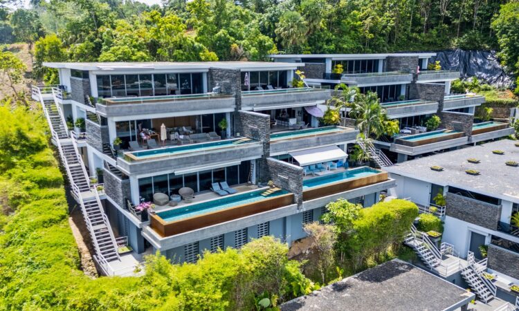Positioned on the hillside above Layan Beach, this spacious three-bedroom sea view apartment is part of an exclusive collection of just 18 contemporary residences.