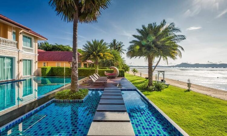 The luxury two-storey villa offers a large swimming pool, elegant living area and expansive terrace for