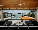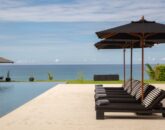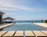 Constructed with shimmering glass walls, the villa’s layout accentuates the central pool and breathtaking sea views. The open-plan living area, positioned just behind the 25-meter pool, features floor-to-ceiling glass doors that effortlessly slide open, inviting refreshing ocean breezes. The villa’s design harmoniously integrates indoor and outdoor spaces, creating a cohesive and airy atmosphere.