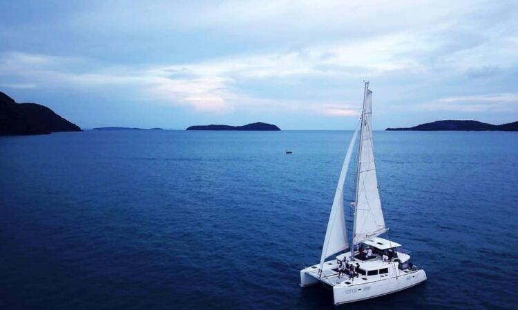 Travel around Phuket island with Catamaran sailing trip, luxury yacht lagoon 450.With various water activities e.g.swimming, snorkeling, fishing, squid fishing, taking beautiful photos from every camera angle.