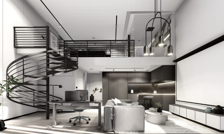 panoramic sea view, co-working space and workplace in the room, gym with sauna, smart home technology.