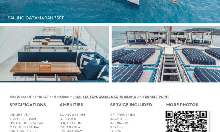 Created a WOWderful sea trip with us. Share +1 Yacht Overview For more information please contact Fiona, Mobile / WhatsApp +66 92 695 8887 Line https://line.me/ti/p/ghTLMjf_tb Email fiona.phukettia@gmail.com www.phukettia.com #poolvilla #villaforrent #villaforsale #condoforrent #condoforsales #phuket #rawai #kamala #surin #bangtao #chalong #patong #Cherngtalay #propertiesforsale #propertyinvestment #propertiesforrent #yacht #catamaran #seatrip #cruise Details Property Status: For Rent Be the first to review “Created a WOWderful sea trip with us.” Cancel reply Rating Name Email Save my name, email, and website in this browser for the next time I comment. Review Related Properties For Rent ฿47,000 Yacht SPEED BOAT CATAMARAN 42 SPEED BOAT CATAMARAN 42 2 years ago For Rent Yacht Motor Boat Motor Boat 2 years ago Close