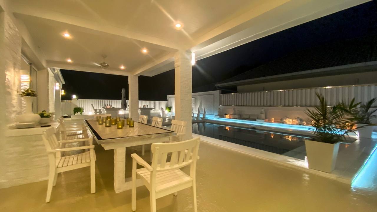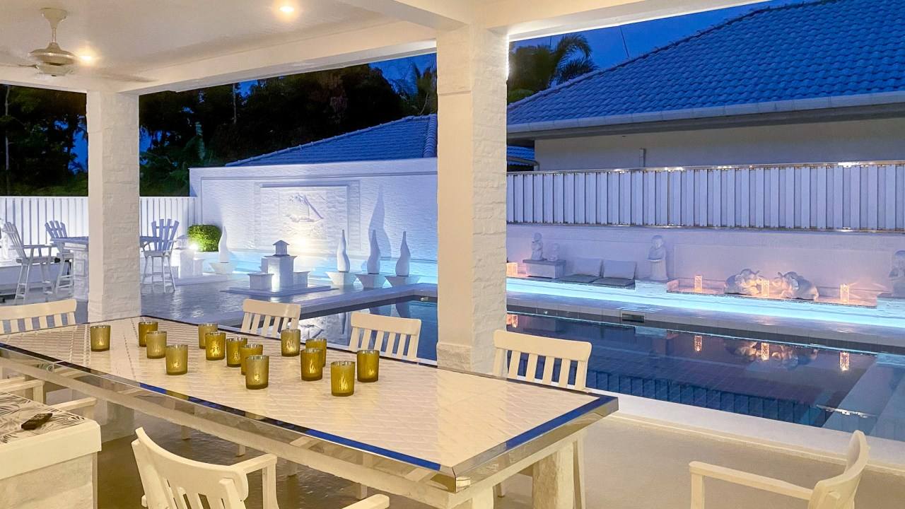 • Private swimming pool with large pool deck and shaded terrace, perfect for outdoor dining
