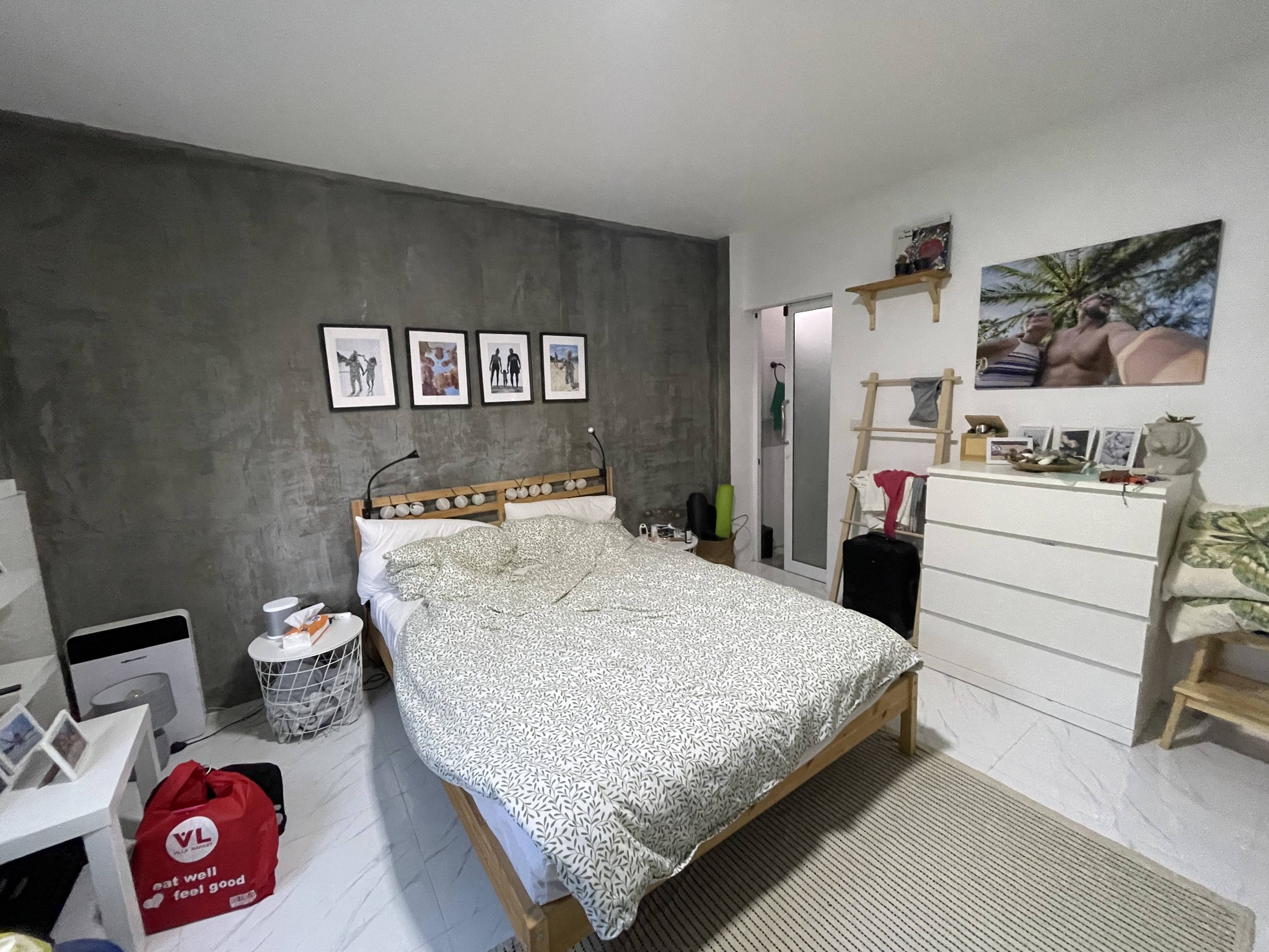 A large open-plan loft (approx. 12 x 8 meters) with its own private entrance, track lighting, and a generous terrace—ideal as a home office, creative workspace, studio, or comfortable living area.