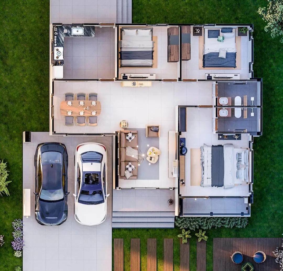 Each villa is beautifully designed with clean lines and large windows that welcome in natural light, creating a warm and inviting atmosphere throughout.