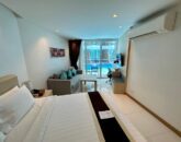 This exclusive studio is a sanctuary of elegance, featuring a well-equipped bathroom, a functional kitchenette, flat TV, WIFI, room service, and a private balcony with direct pool access.