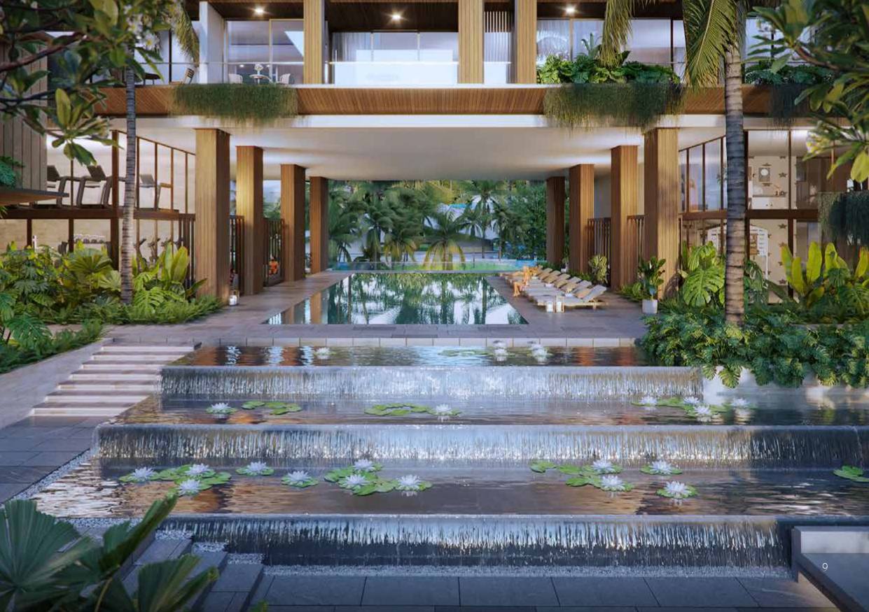 Facilities include lobby, restaurant, café, underground parking, Gym, kids club, infinity pool with sky bar, buggy service.