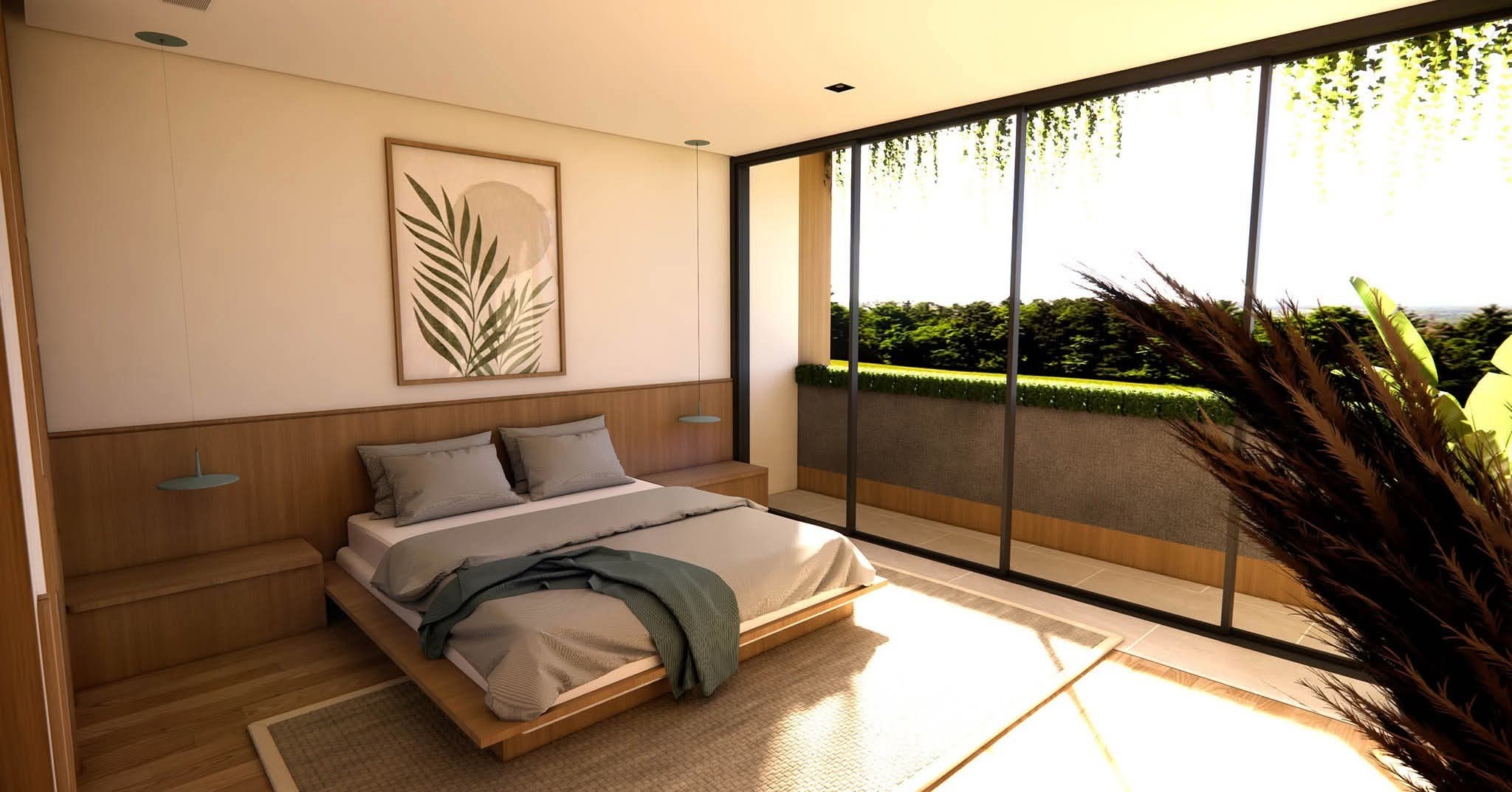 These residences offer serene living within a vibrant location. Our three-bedroom (2+1) Terraces blend Japandi design with stunning mountain vistas, conveniently situated near covered tennis courts and the wellness center. Enjoy a sense of privacy, integrate seamlessly into the community, and consider our professional rental program when you are not in residence, or acquire a property as an investment, allowing us to handle the management.