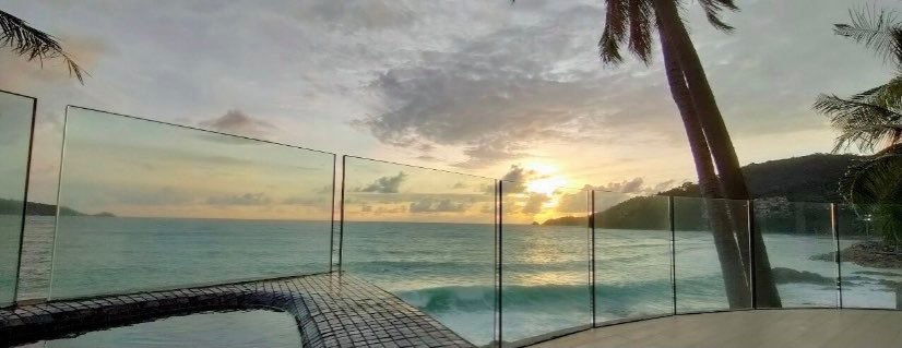 Immaculately maintained oceanfront villa for sale in Kalim, Patong, offering 3 to 5 bedrooms with panoramic west-facing sea views over Patong Bay. This luxury Phuket villa features dramatic double-storey floor-to-ceiling windows showcasing breathtaking sunsets and uninterrupted ocean vistas.