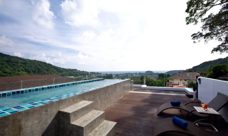 Пентхаус с собственным бассейном на крыше и видом на море.