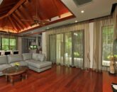 This unique resort villa is the real hideaway place for holiday. Designed in Thai-Balinese style with precious wood carving and luxury oriental décor. Old trees are kept as landscape of “Home in Garden” offering harmony of natural tropical setting and tranquility to the senses. This glamorous villa has huge area of outdoor living & dining with waterfall pool for relaxing all day long.