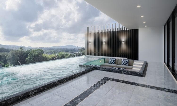Nestled on the hillside along Chaofa West Road, in close proximity to the renowned Chalong temple (wat Chalong), you will find a delightful assortment of six private pool villas that offer breathtaking panoramic views of the mountain and sea. While also being conveniently close to Phuket’s main attractions.