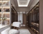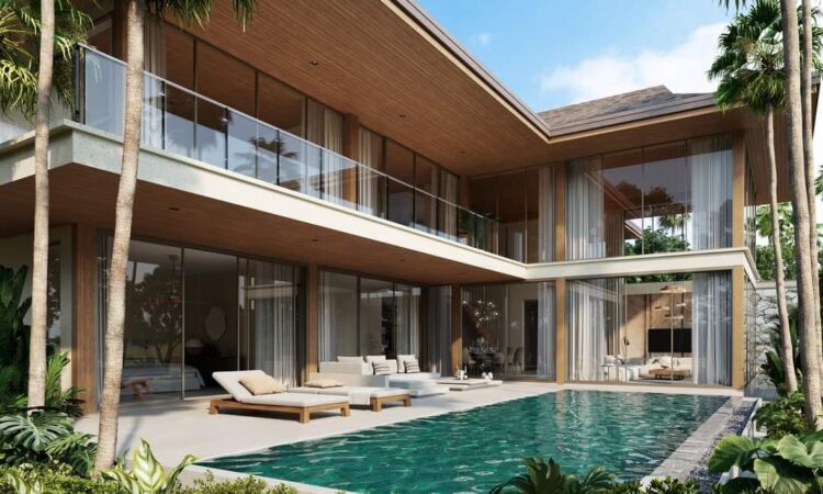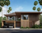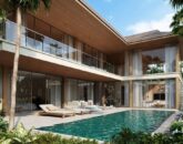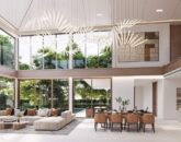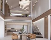 A luxurious family home for 4-6 members, featuring 4 spacious bedrooms and an open-plan living-dining area with double-volume ceiling that connects to an outdoor pool view. It combines oriental modern style with functional elegance, offering a serene and sophisticated living space.