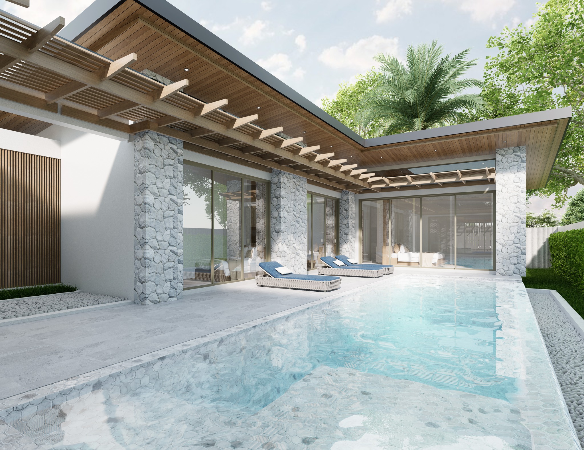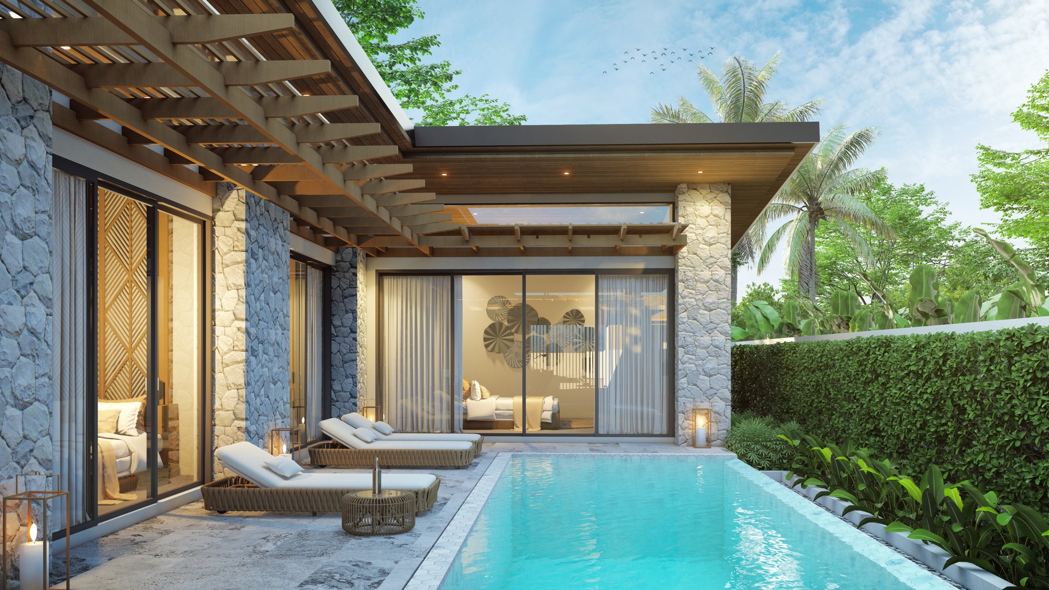 We designed each villa to feel like our own home. Focusing on striking the ideal balance between nature and privacy. We used our brand identity as a design reference.