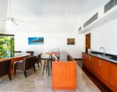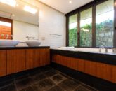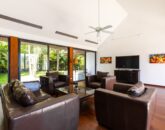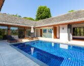 This four bedroom contemporary villa has been decorated to a high standard, combining the best in Western living with Asian styling. The living rooms are arranged around a courtyard, 14m x 4.3m swimming pool and patio creating a very private space yet maximizing the views. A large roof overhangs providing shelter and shade from the sun whilst sliding windows on all sides of the villa open to let the afternoon breeze in. All rooms enjoy individually controlled air conditioning and fans.
