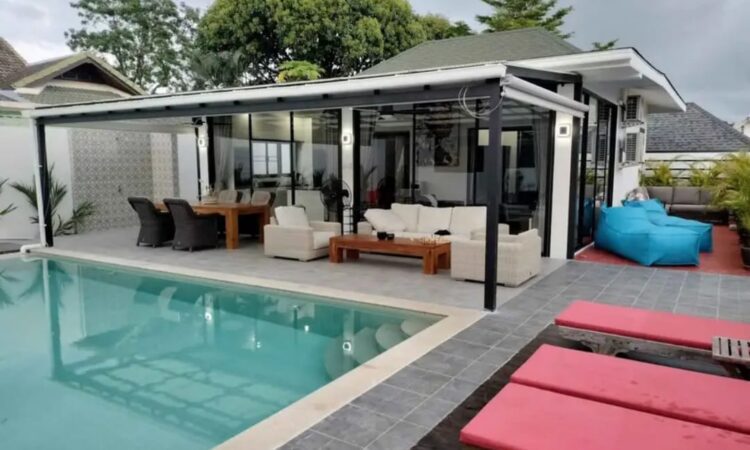 There are 2 bedrooms in the main villa and a master bedroom with bath opposite the villa.
