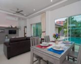 Each villa has 2 bedrooms nested around private swimming pool 1.2 m deep, kitchen joined with common living room, covered parking and a small deck at the pool, surrounded by tropical garden. Each room has 2 single beds that can be joined to one king size bed, own bathroom, a hair dryer, air conditioner. Each villa has free WiFi, cable TV and fully equipped western kitchen.