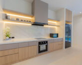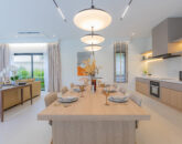 The villa promotes communal living through its expansive open-plan living areas and concertina doors that seamlessly integrate the outdoors with the indoors. Fully equipped kitchens, dining spaces, and en-suite bathrooms are just a few of the notable features.