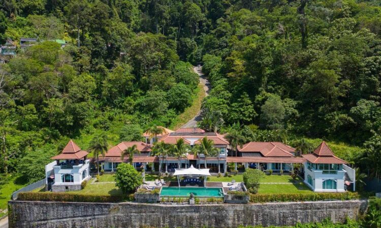 A magnificent Thai-Balinese 8-bedroom villa tucked on the beautiful mountainside of Kalim Bay. The villa is only 5 minutes away from downtown Patong, yet completely private and quiet with its sea view to the front side and forested mountains to the rear side. Classic Asian design with Thai and Balinese artwork.